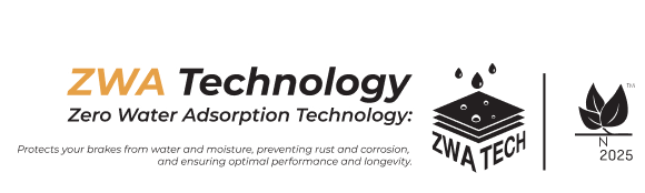 ZWA_Water-Resistant Technology actively repels moisture at the pad–rotor interface, washing away bite and risking slip in wet conditions. While the heat-treated ceramic surface drives off resin gases, preventing early brake fade before it starts. Built-in multilayer shims lock onto the pad, soaking up vibration to keep braking quiet and the pedal feeling firm.